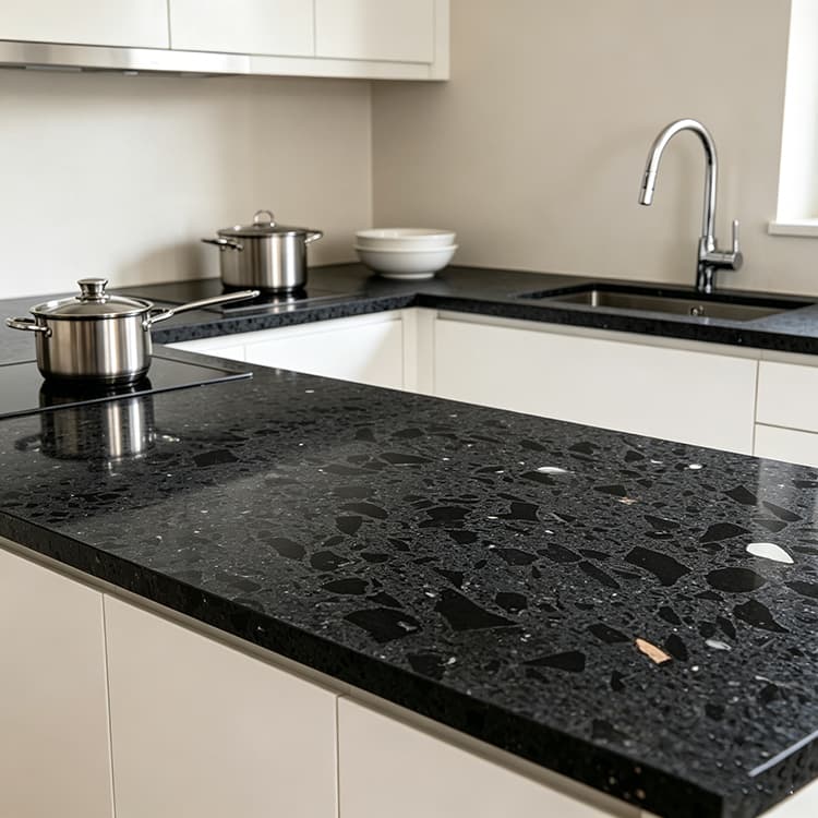 Black Speckled Engineered Quartz Stone