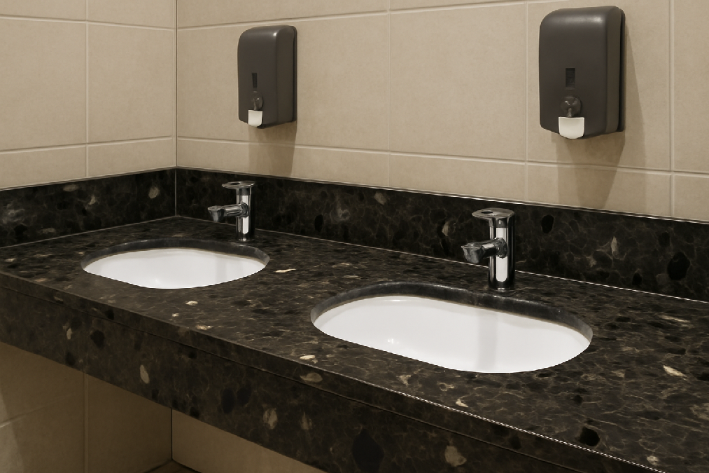 This gray artificial marble features a dark gray color with delicate textures, combining a high-end look and durability. Its dense surface is stain-resistant—stains can be wiped clean instantly. It is wear-resistant and impact-proof, leaving no marks with daily use. Customizable in size and thickness, it fits scenarios like countertops and feature walls. Easy to install, it matches various styles such as modern minimalism, adding a calm and grand vibe to the space.